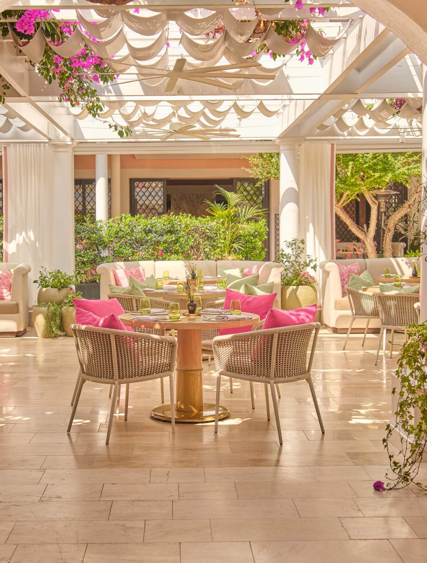 The Restaurant at Hotel Bel-Air provides guests with an intimate hideaway where the refreshed design blends garden aesthetics with thoughtful new details — from Marie Daâge china in the hotel’s signature blush to a sculpted marble bar. Tucked-away alcoves and lush greenery offer the prefect combination of privacy and freshness. The menu celebrates seasonal ingredients, meticulously prepared, with a focus on flavour and freshness.