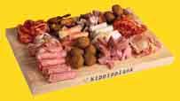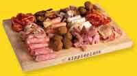 Inhoud: balletjes, mini-saté, chorizo plakjes, serrano ham, serrano roomkaas rolletjes, kipfilet roomkaas rolletjes, salami roomkaas rolletjes, salami blokjes, katenspek blokjes.