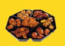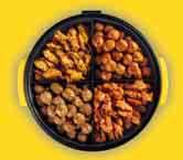 30 balletjes, 30 mini-saté, 10 pittige kluifjes, 10 zoete kluifjes, 10 naturel kluifjes.