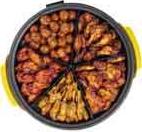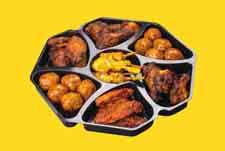20 balletjes ketjapsaus, 20 balletjes pindasaus, 20 mini-saté indian mystery marinade, 20 mini-saté ketjapsaus, ± 300 gram kippeling, 12 kluifjes naturel.