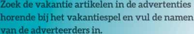 Vakantiespel. Iedere week vind je een nieuwe zoekopdracht in deze krant. Blader snel verder en speel mee!