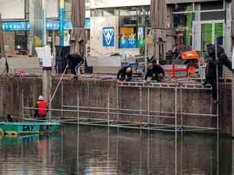 Dit jaar is de overdekte ijsbaan niet zomaar terug, maar wel op een heel bijzondere plek: op en over het water bij de Spuiboulevard. De baan is inmiddels volop in opbouw.
