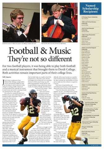 They’re not so different For two football players, it was being able to play both football and a musical instrument that brought them to Dordt College. Both activities remain important parts of their college lives. Sally Jongsma