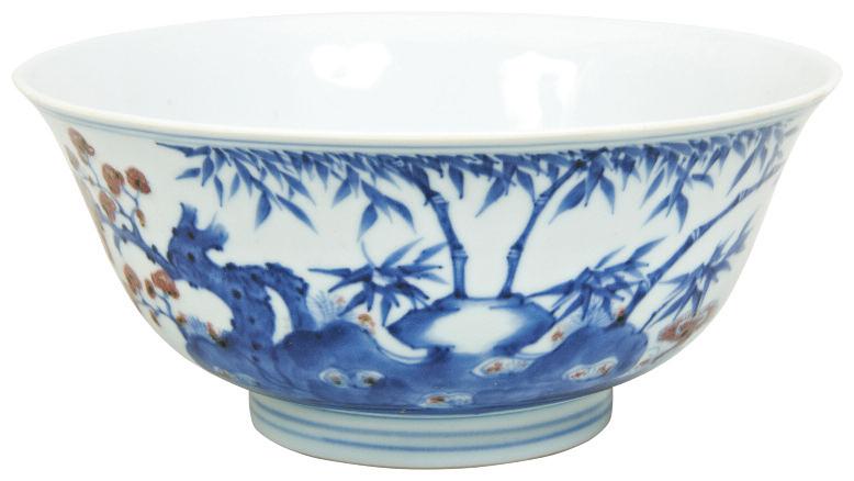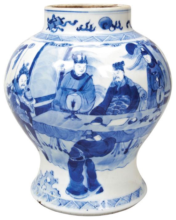 the body of compressed globular form the flared rim decorated with shou characters 12cm wide £100 £200