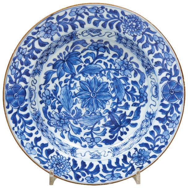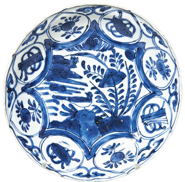 LATE MING / EARLY QING DYNASTY the circular stand raised on three scroll feet 17cm diam £200 £400 Each lot is