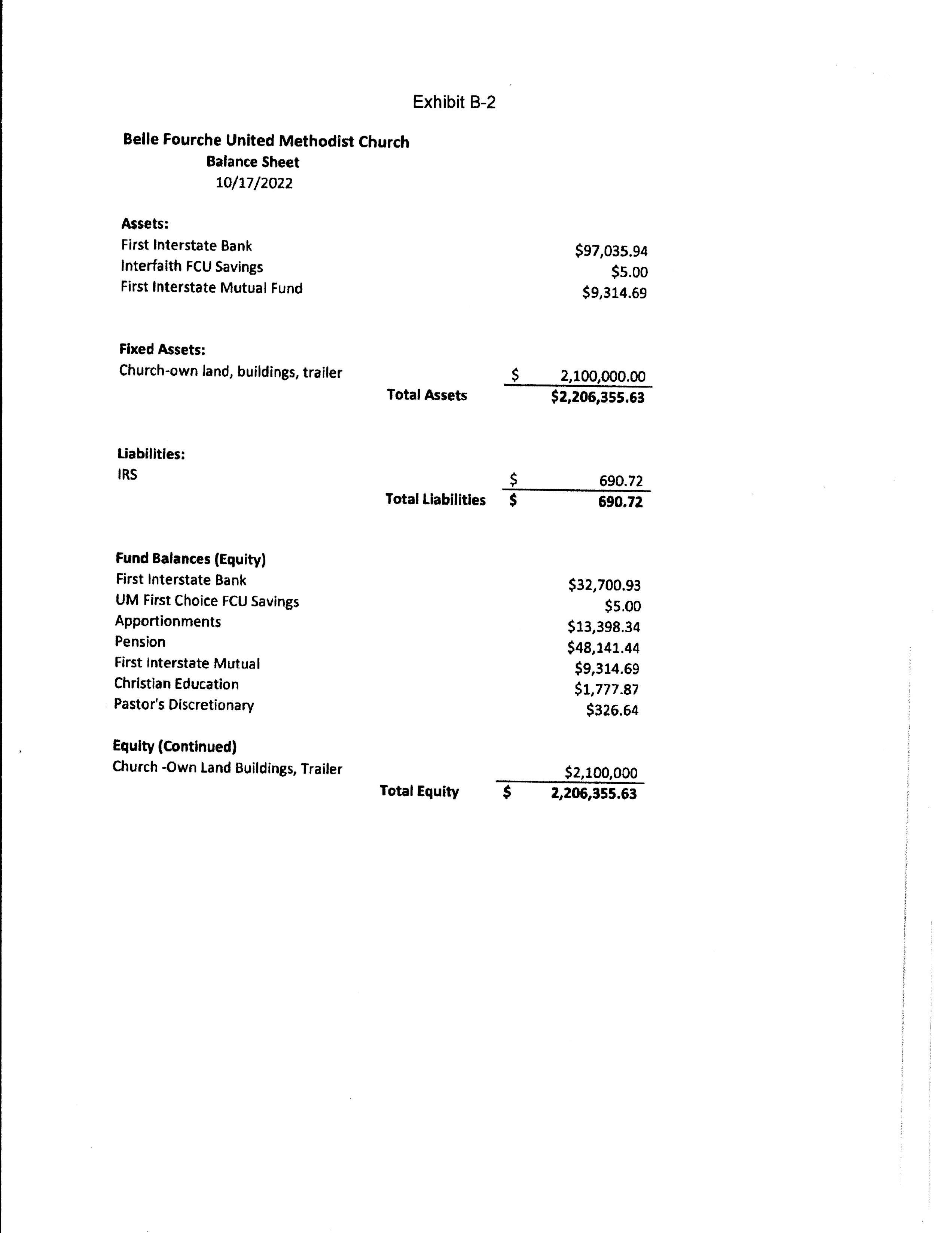Pension Liability (calculated using Wespath’s formula) $10, 546.00 Buildings and Land holdings Church building $1.00 Other special circumstances None