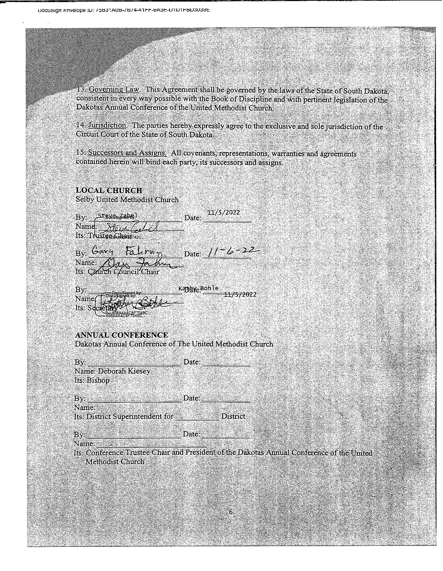 THEREFORE, having met all the requirements in a timely manner, The Conference Board of Trustees hereby, prayerfully rec ommends the ratification of disaffiliation agreement for Selby United Methodist Church in Selby, South Dakota. We pray for God’s favor and blessings on this ministry as we part ways.