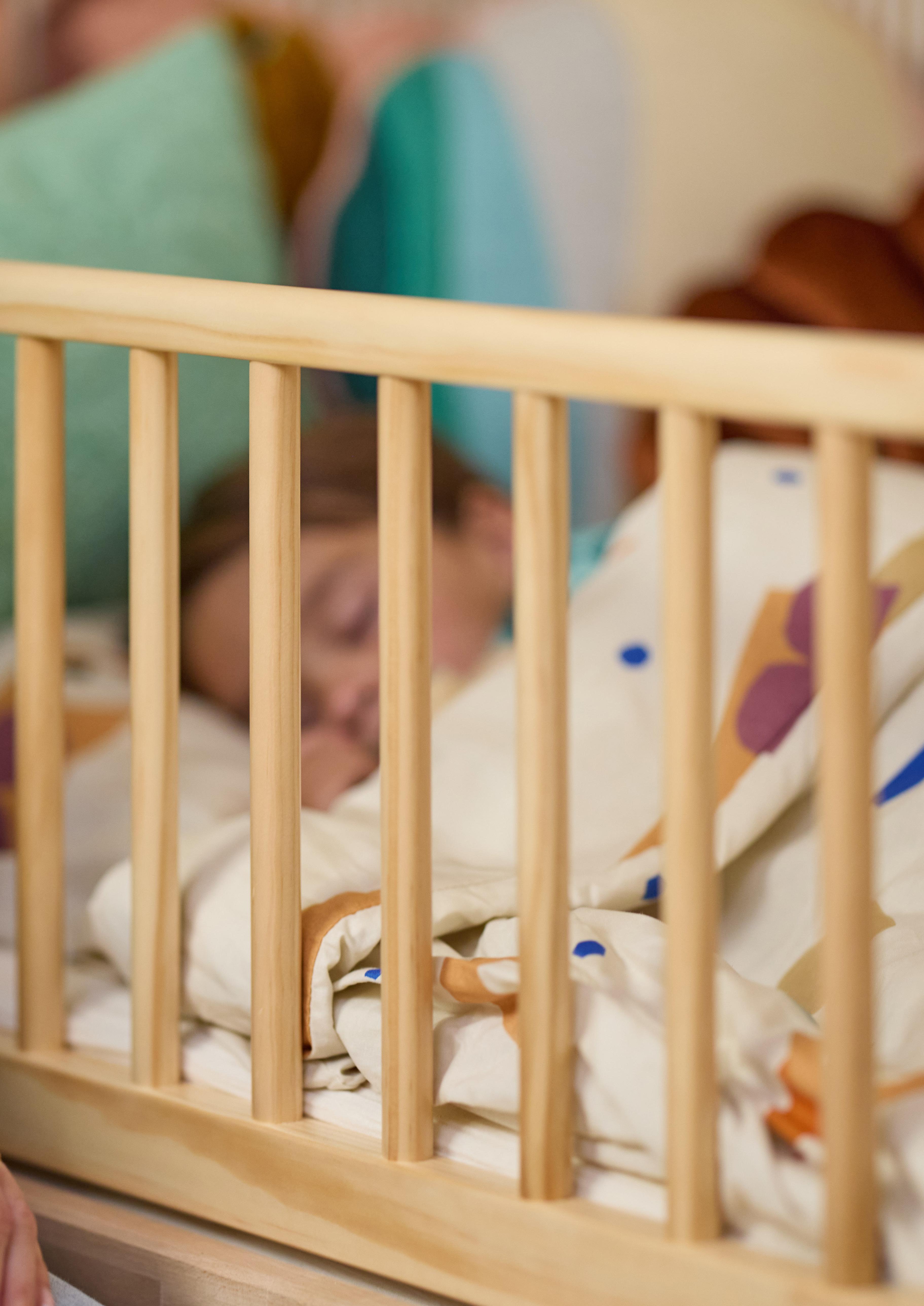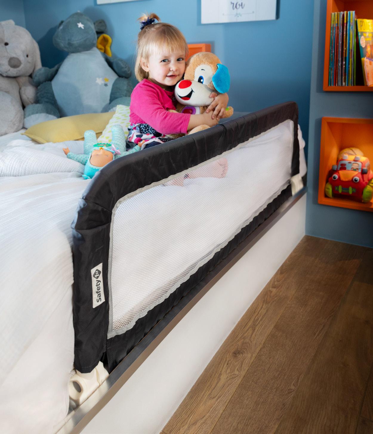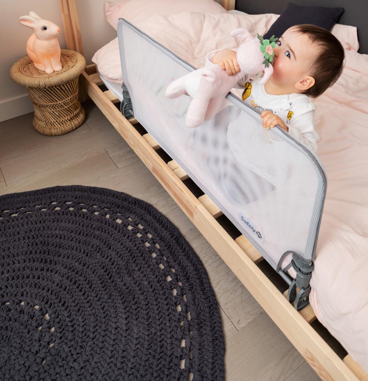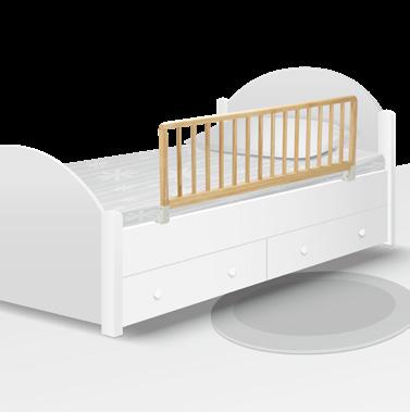 • Barierka ochronna łóżka 110 cm złożona bez konieczności montażu Długość łóżka > 160 cm z bokiem, wysokość min. 20 mm