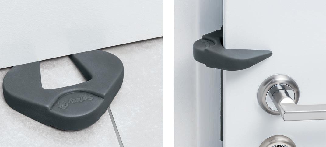 • Zapobiega uwięzieniu palców w zawiasach drzwi