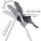• Asiento regulable en altura de 6 posiciones, bandeja regulable en profundidad de 3 posiciones y asiento reclinable de 3 posiciones.