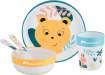 • Colorida vajilla que incluye: un plato, un vaso y dos cubiertos.