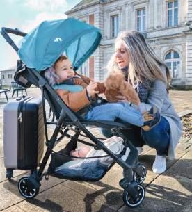 • Arnés de 5 puntos, sujeción de la entrepierna y freno en las ruedas traseras.