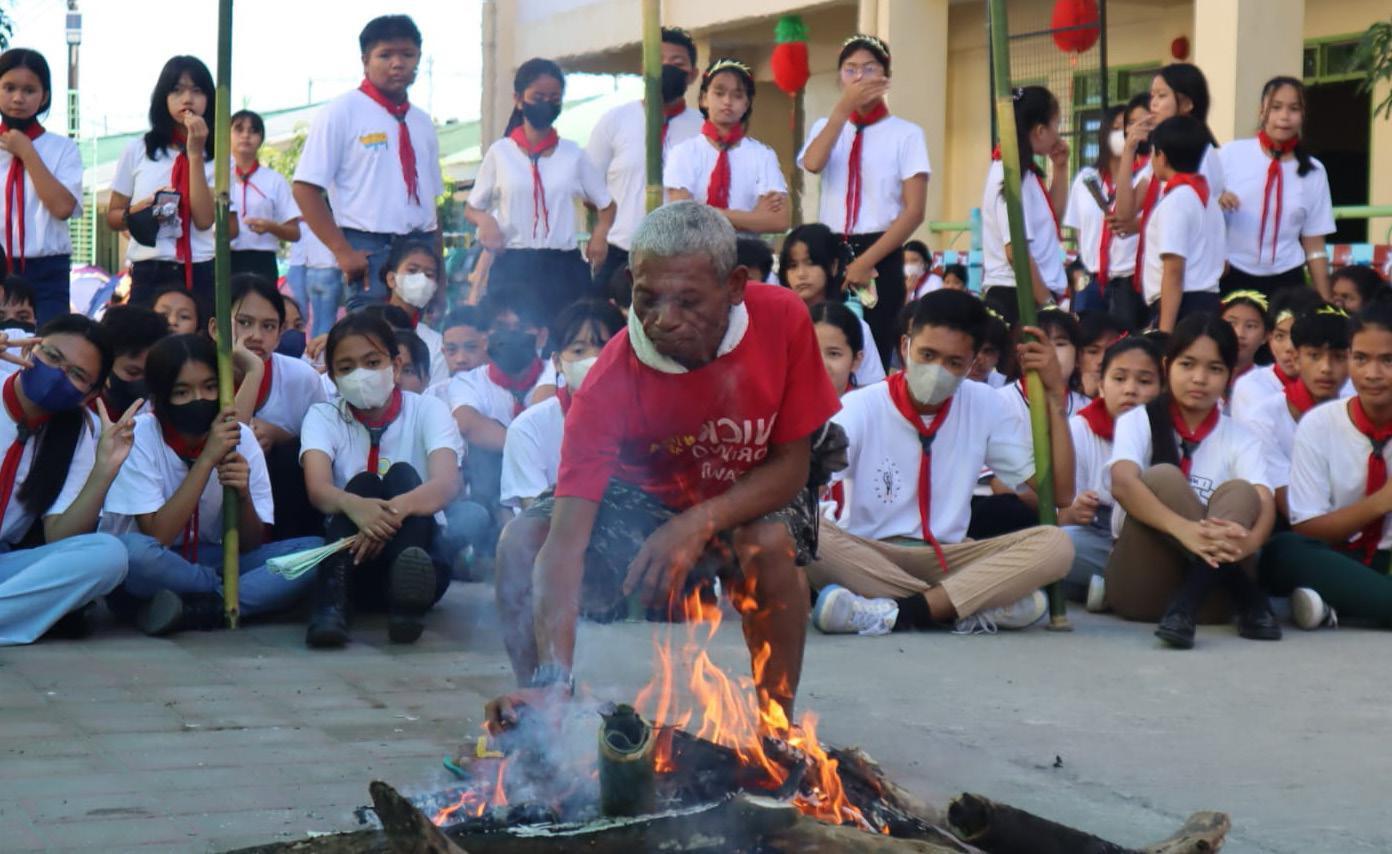 Aeta Community shares their expertise in backwoods cooking to Scouters during the 2022 CNHS Backyard Camping held at Capas National High School, Dolores, Capas Tarlac. OUTFIT 166 Unit Leaders aims for students to experience and learn more about backwoods and primitive living.
