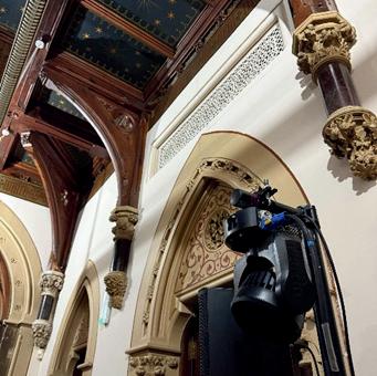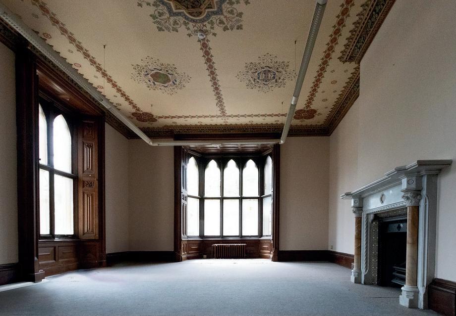 A stunning gothic revival space featuring a vaulted, star-painted ceiling and ornate arched windows, guaranteed to impress guests from the moment they arrive.