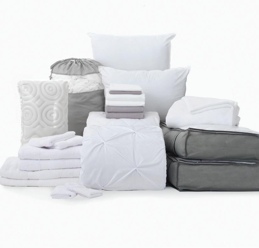 Pack Includes: Two complete Twin XL 3-piece sheet sets, Two machine-washable pillows, Twin XL comforter, Twin XL mattress pad, Twin XL egg crate pad, Twin XL microplush blanket, 6-piece towel set, laundry bag