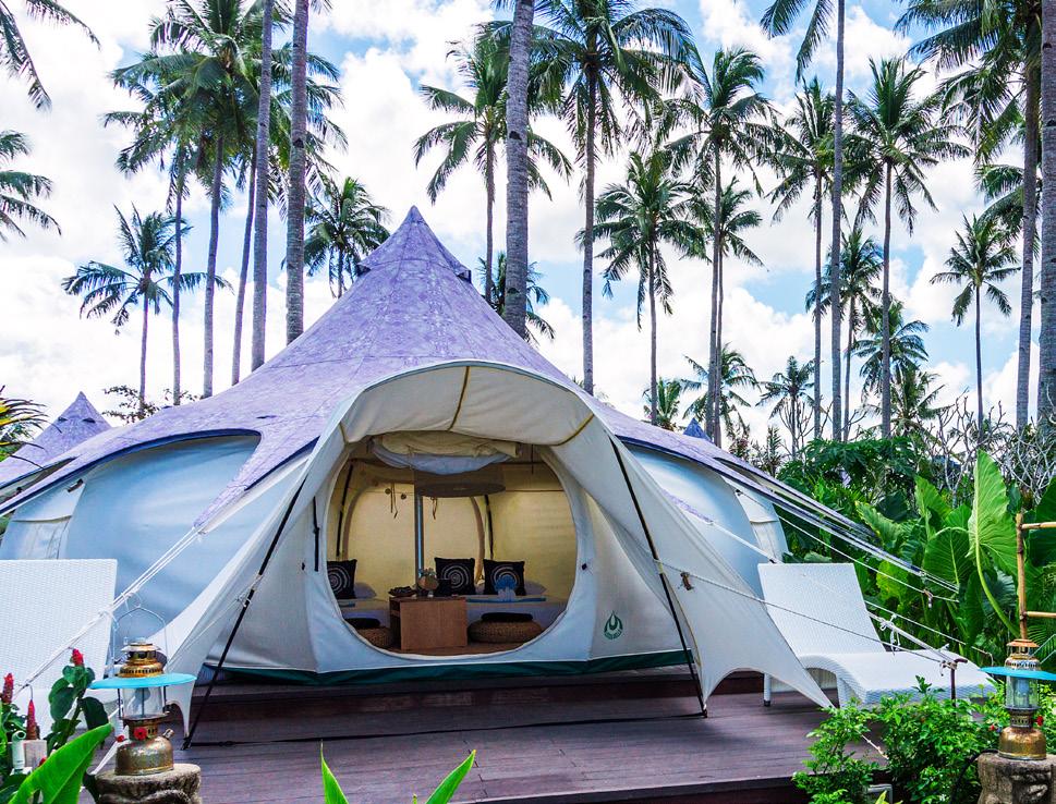 ROOMS. A dizzying range of choices, from a safaristyle tent glamping for two to the loft , a two-storey glamping tent for four, with a balcony, the boutique, a luxurious glamping tent for six with two bedrooms, living and dining area, hot tub and spa pool, flat screen TV, Netflix, and a wooden decking for chilling outdoors, to various categories of suites and rooms with bath tub and private jacuzzi.