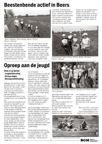 ons toegestuurd is, krijgen we een concreter beeld over de beroepen die hierin het beste zullen passen. Wij laten het jullie nog weten. Mien van Hoek, voorzitter ‘Linden-groet-Linden’ mienvanhoek@gmail.com 0485-315017/06579 56 00