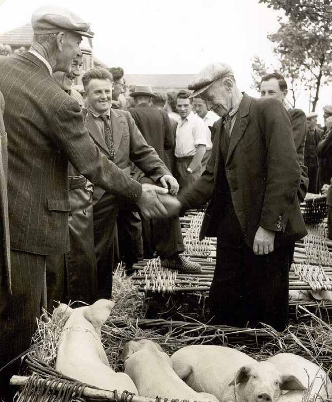 De tweede foto is uit 1957. Het is op de markt in Cuijk waar dan ook nog vee wordt verhandeld. Ook biggen en die worden in manden aangevoerd. In het midden staat, heel herkenbaar, They Nabuurs die boerde op de Elstweg in Beers. Half zichtbaar, rechts, is ook nog Jo Schepers.