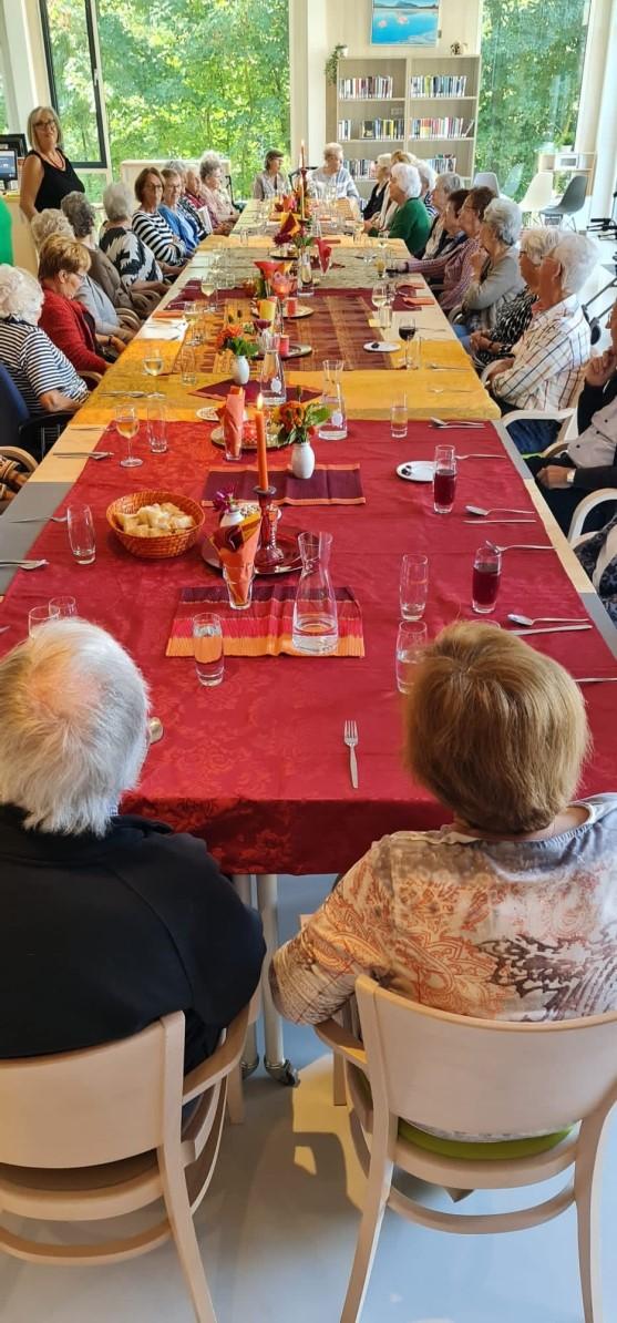 Afgelopen vrijdag, 30 september, was er voor de 3e keer dit jaar Jetty’s eettafel. Nadat kokkin Denise het spits afgebeten heeft en kok Jens de tweede ronde voor zijn rekening had genomen, was het nu de beurt aan kokkin Gera met haar team om voor een heerlijke maaltijd te zorgen. Een maaltijd met een Oosterse inslag en gelukkig zijn er in Stompwijk voldoende mensen die het waarderen om eens iets anders te proberen, want er waren maar liefst 36 aanmeldingen. Zelfs de tafel