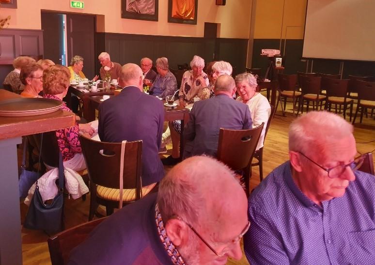 In plaats van de jaarlijkse bustocht werd, (om verschillende redenen) gekozen voor een Voorjaarsontmoetingsdag, in ‘De Meester’ in Zoeterwoude. We werden welkom geheten door Trees (onze voorzitter) met koffie of thee met wat