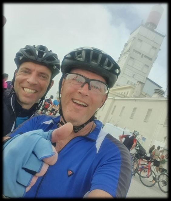 Jarno (met René) op donderdag op voorverkenning en zelf ook de Mont Ventoux beklommen
