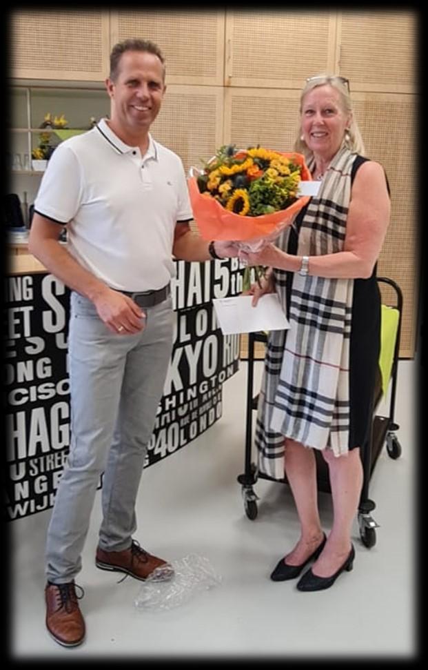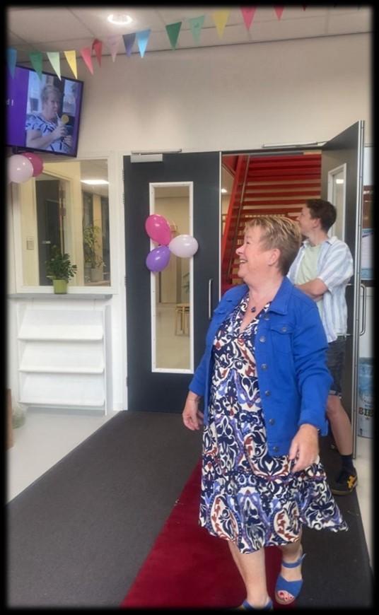 Een trotse juf Gea (conciërge)