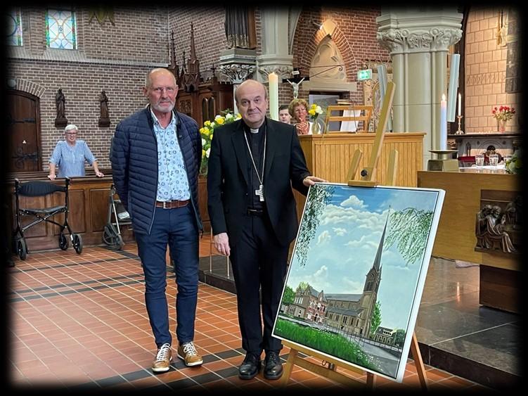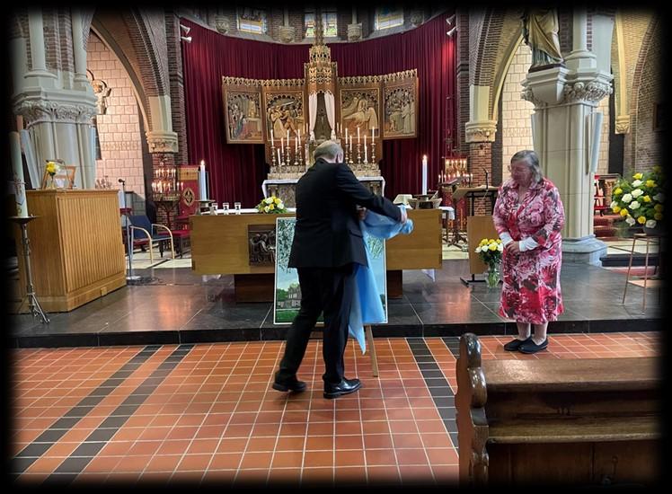 Na afloop van de viering was er de onthulling van een schilderij van de kerk, gemaakt door Aad Bennis. Een waar kunstwerk.