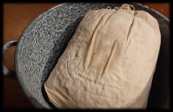 Dit recept is denk ik al wel een eeuw oud. Mijn moeder maakte het met vasten op Aswoensdag of Goede Vrijdag en met het schoonmaken van de huisstal. Dat gebeurde als de koeien in het voorjaar naar buiten gingen en de stal zomers leeg stond. De hele ochtend werd er hard gewerkt en de hele stal met bezems en schrobbers aangepakt. Dan nog een paar dagen drogen en daarna witten met de luiwagen. Tijdens het schrobben van de stal stond de Jan in de Zak de hele ochtend op het fornuis in het achterhuis te pruttelen, dit wist André Suyten nog van toen hij boodschappen kwam bezorgen. Het recept dankt zijn naam aan de bereidingswijze dus in een zak. Deze zak werd gemaakt van ongebleekte katoen en in de pan op een oud bord geplaatst om aanbranden te voorkomen. Toen ik trouwde heb ik natuurlijk ook mijn eigen zak genaaid. Ook onze kinderen zijn er dol op. Het originele recept vond ik terug in een oud kookboek van mijn moeder dat zij kreeg toen ze op de huishoudschool zat.