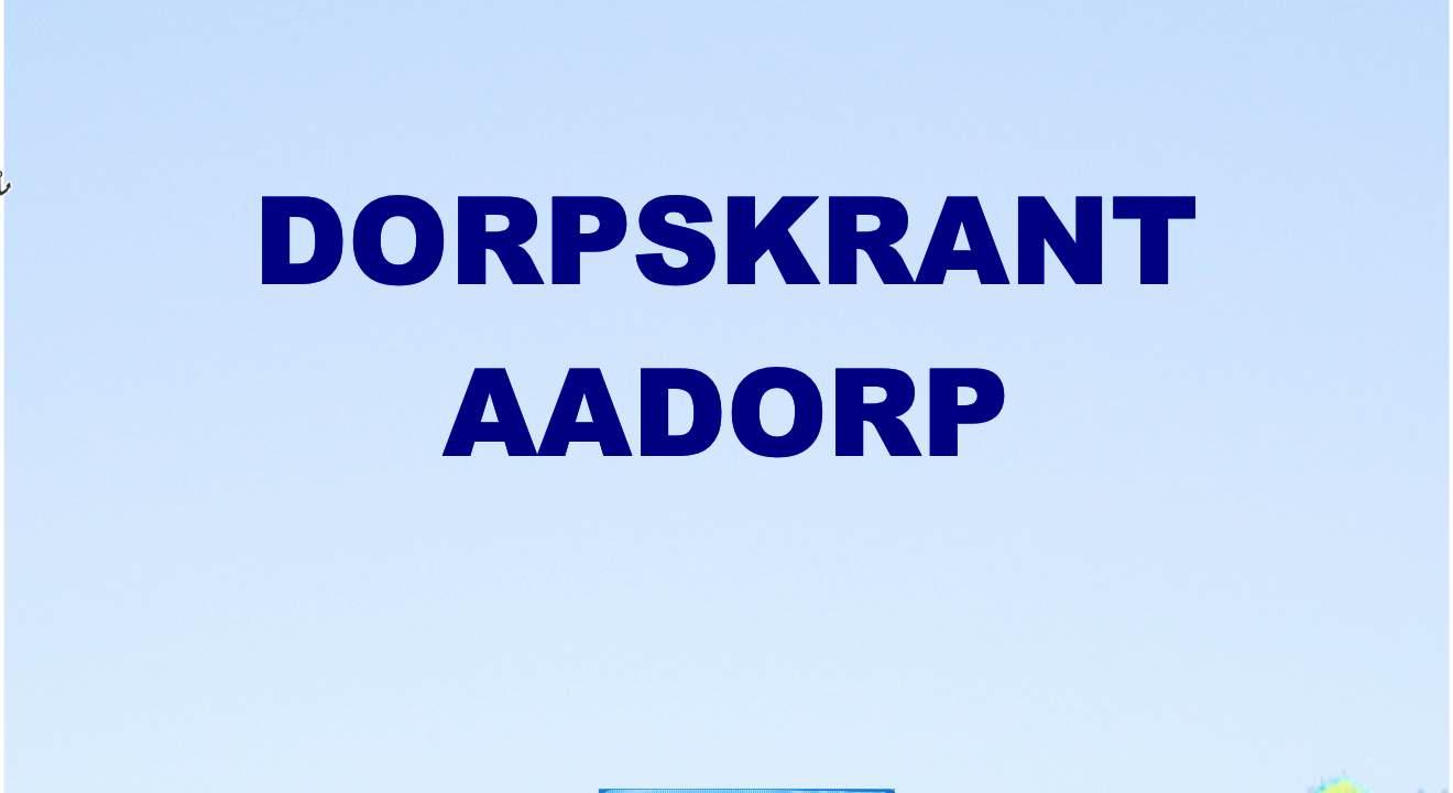 De Dorpskrant Aadorp verschijnt vier keer per jaar in een oplage van 615 exemplaren en is bedoeld als doorgeefluik van informatie voor en door alle Aadorpers. De redactie behoudt zich het recht voor om ingezonden teksten in te korten. Ondertekende stukken komen voor verantwoording van de schrijver en anonieme artikelen worden niet geplaatst, tenzij de naam bekend is bij redactie.