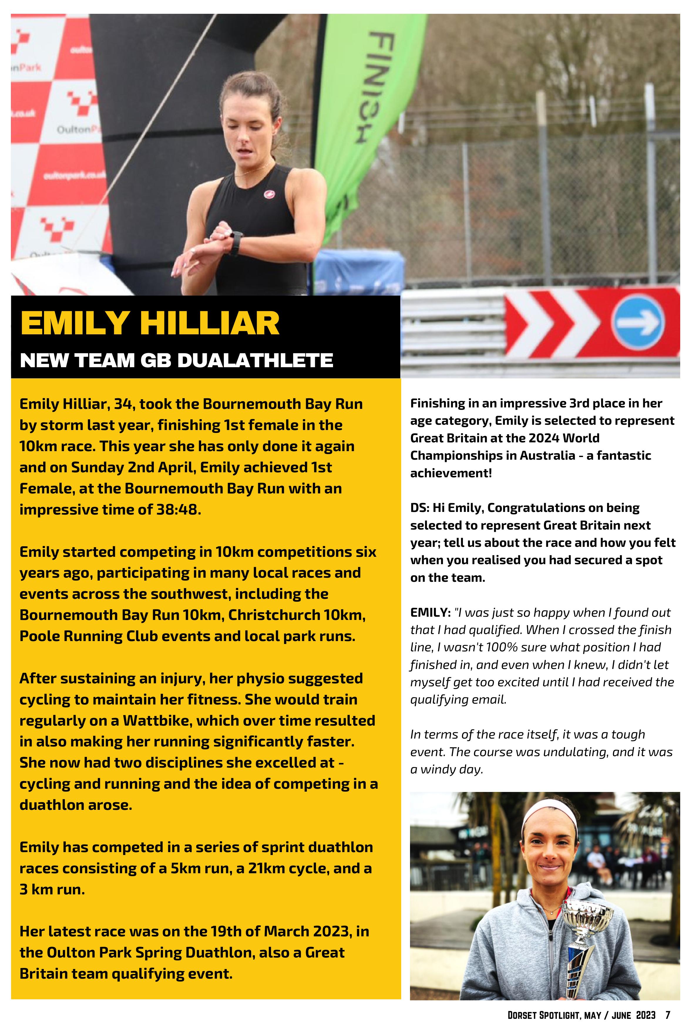 Emily Hilliar – Dualathlete and winner of the Bournemouth Bay Run 10km event.
