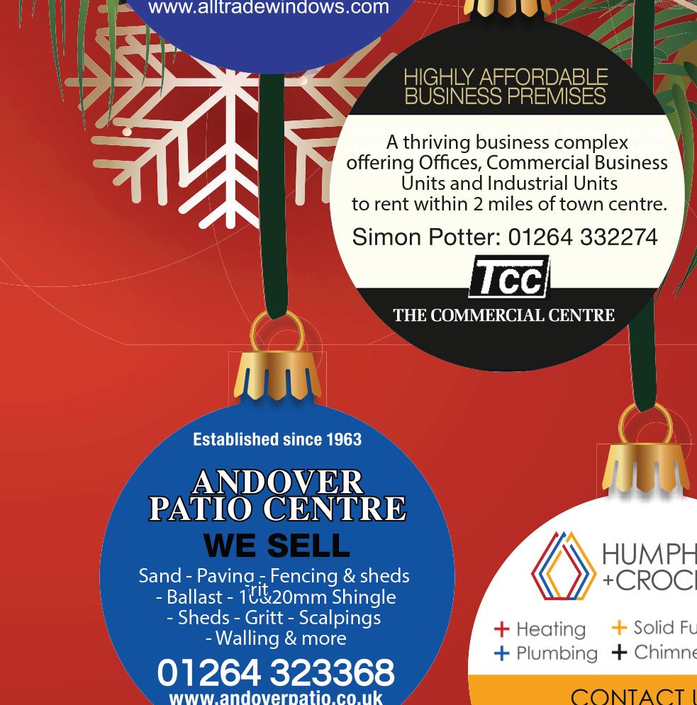 Andover’s only independent Family Funeral Directors and Memorial Consultants S.& J. MADDOCKS S. & J. Maddocks offer an experienced, personal and friendly 24-hour service. Local people serving local families for over 25 years. Chapel of Rest • Free Parking • Funeral Plans STATION APPROACH, ANDOVER, SP10 3HN Tel: 01264 355600 sjmaddocks.co.uk • Windows • Doors • Conservatories • Sealed Units • Composite Doors • Facias and Soffits We offer supply only or supply & fit Tel: 01264 366001 Email: alltradewindows@btconnect.com Unit 108, The Commercial Centre Picket Piece, Andover, SP11 6RU www.alltradewindows.com RADE windows LTD T ALL ANDOVER PATIO CENTRE WE SELL SPECIAL OFFER MOBILE HEATER (GASNOTINCLUDED) £140.00 ALSO AVAILABLE, BAGS OF COAL, LOGS & KINDLING WOOD For all your outdoor living needs ● 10 & 20mm Shingle ● Sand ● Fencing & Sheds ● Ballast ● Paving ● Grit ● Walling ● Scalpings ● 2, 3 & 5 cuyd Skips We are open Monday – Friday 7:30am - 5pm, Sat 7.30am - 1pm We offer a delivery service 6 days a week Ample free parking THE COMMERCIAL CENTRE • PICKET PIECE Tel: 01264 323368 www.andoverpatio.co.uk Established since 1963 47 Please mention Modern Magazines when contacting advertisers