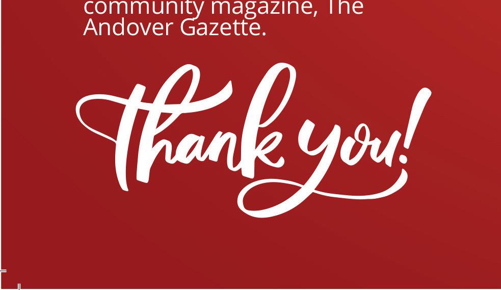 DISCLAIMER: Whilst every care has been taken to ensure the data in this publication is accurate, the publisher cannot accept any liability to any party to loss or damaged caused by errors or omissions resulting from negligence, accident or any other cause. Andover Gazette does not officially endorse any advertising material included within the publication. No part of this publication may be reproduced, stored in any retrieval systems or transmitted in any form, without prior permission of the publisher.