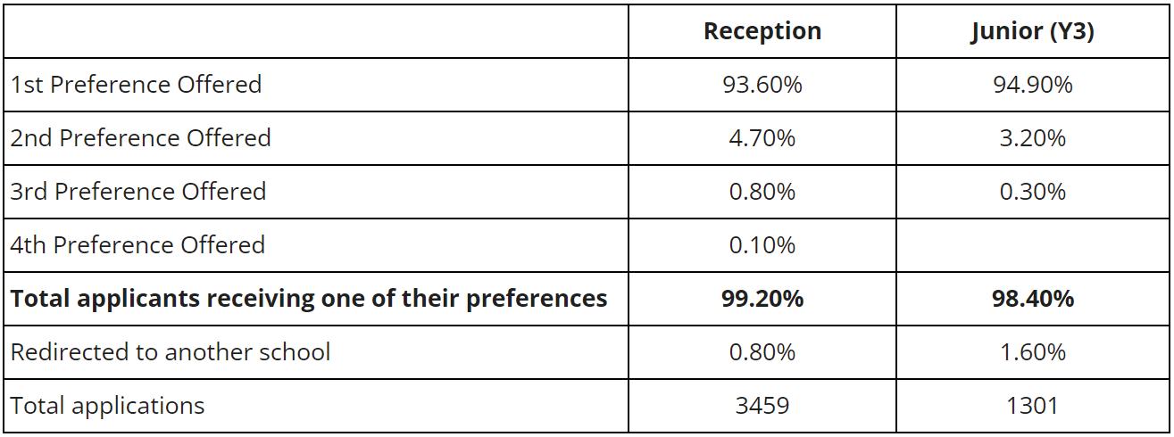 “We are pleased that we have been able to offer a high percentage of families one of their preferred schools for their children to attend from September.”