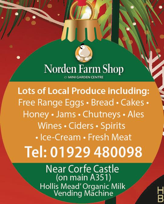 Near Corfe Castle (on main A351) Tel: 01929 480098 Winter essentials: Logs – Seasoned Hardwood Coal – Kindling – Calor Gas LOCAL: Meats – Veg (inc 25kg Pots) Bread – Cakes – Honey – Jams – Chutneys Free range eggs – Ale – Cider – Wine Large Range Of Wild Bird Feed & Feeders Equestrian Feed & Accessories Animal & Pet Feeds Winter bedding plants – Shrubs Compost – Terracotta pots Plus lots lots more – come and see for yourselves Large Selection of Christmas Trees Sawn & Potted - from Sat 26th Nov Holly Wreaths Tree Lights Tree Stands Lots of Christmas Gi s - interesting & unusual! OPEN 7 DAYS A WEEK 7 Please mention Modern Magazines when contacting advertisers