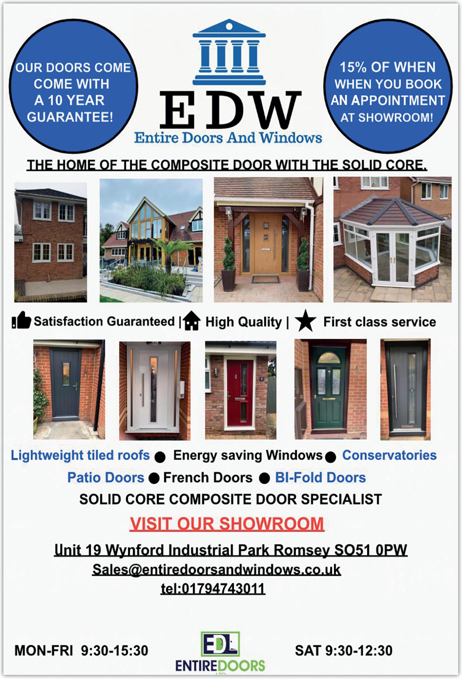 SALE OFFER15%off • • Space saving Fully insulated Fully automatic No maintenance Reduced draughts So simple to operate Simple key fob operation All doors fitted with bottom safetyedgesystemincompliance withtradingstandardsregulations Full range of colours Single/Double doors all made in our Bishops Waltham factory WE SURVEY WE MANUFACTURE WE INSTALL NO DEPOSIT REQUIRED Covering Surrey, Hampshire, Berkshire & Dorset 01962 600777 info@skandoor.co.uk | www.skandoor.co.uk Autumn Sale 33Please mention Modern Magazines when contacting advertisers