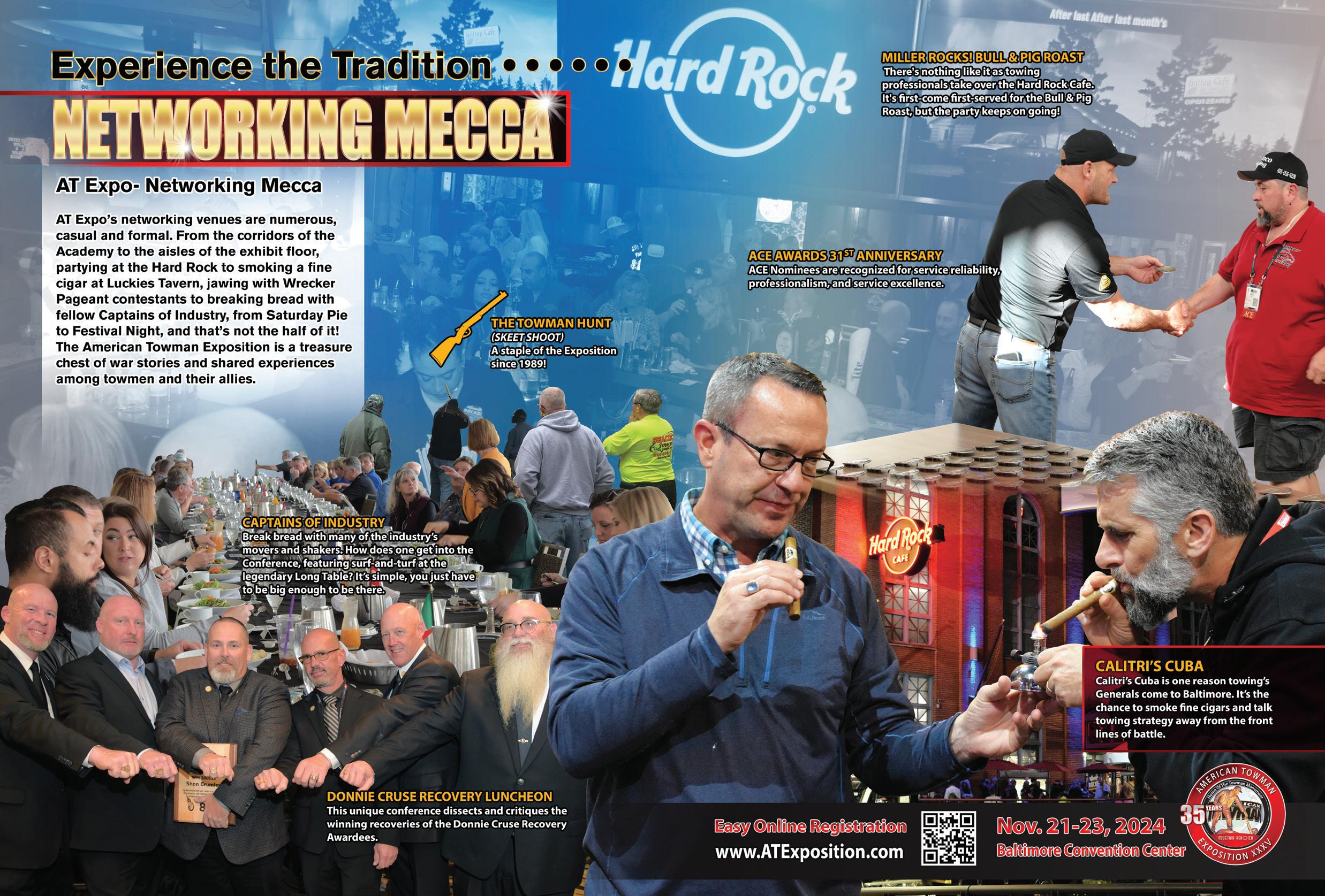Speaking of the AT Expo, the custom continues this year as we celebrate the show’s 35th anniversary! Tradition abounds in Baltimore as towers gather from all over the world to join together to celebrate this unique industry. Baltimore is truly the Mecca of towing. Throughout the years, hundreds of thousands of towing professionals have made the pilgrimage to the greatest tow show on earth. We have dedicated several pages to the Exposition that will allow you to get a glimpse of what you can expect this coming November.