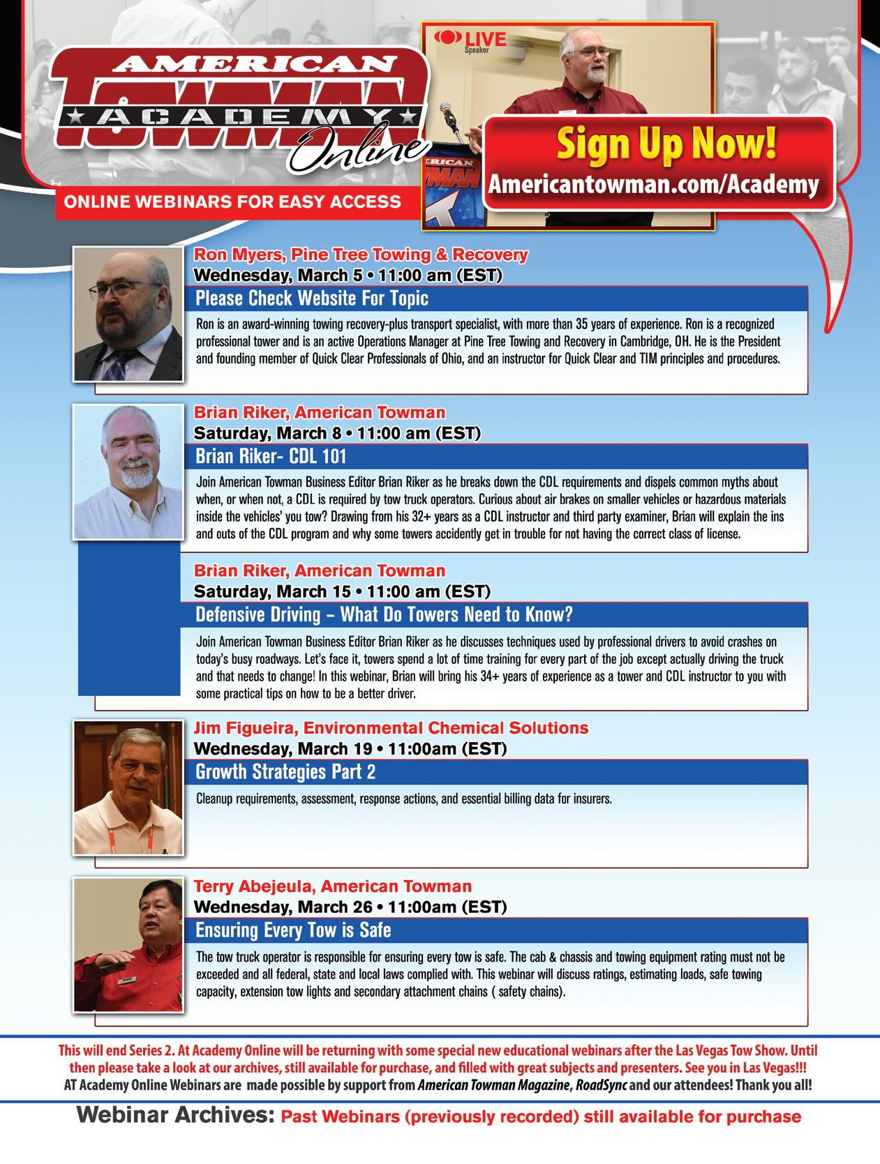 American Towman is equally dedicated to serving the towing industry by annually hosting three towing expositions that feature comprehensive training sessions, the latest equipment, and invaluable opportunities for towers to connect and network with peers.