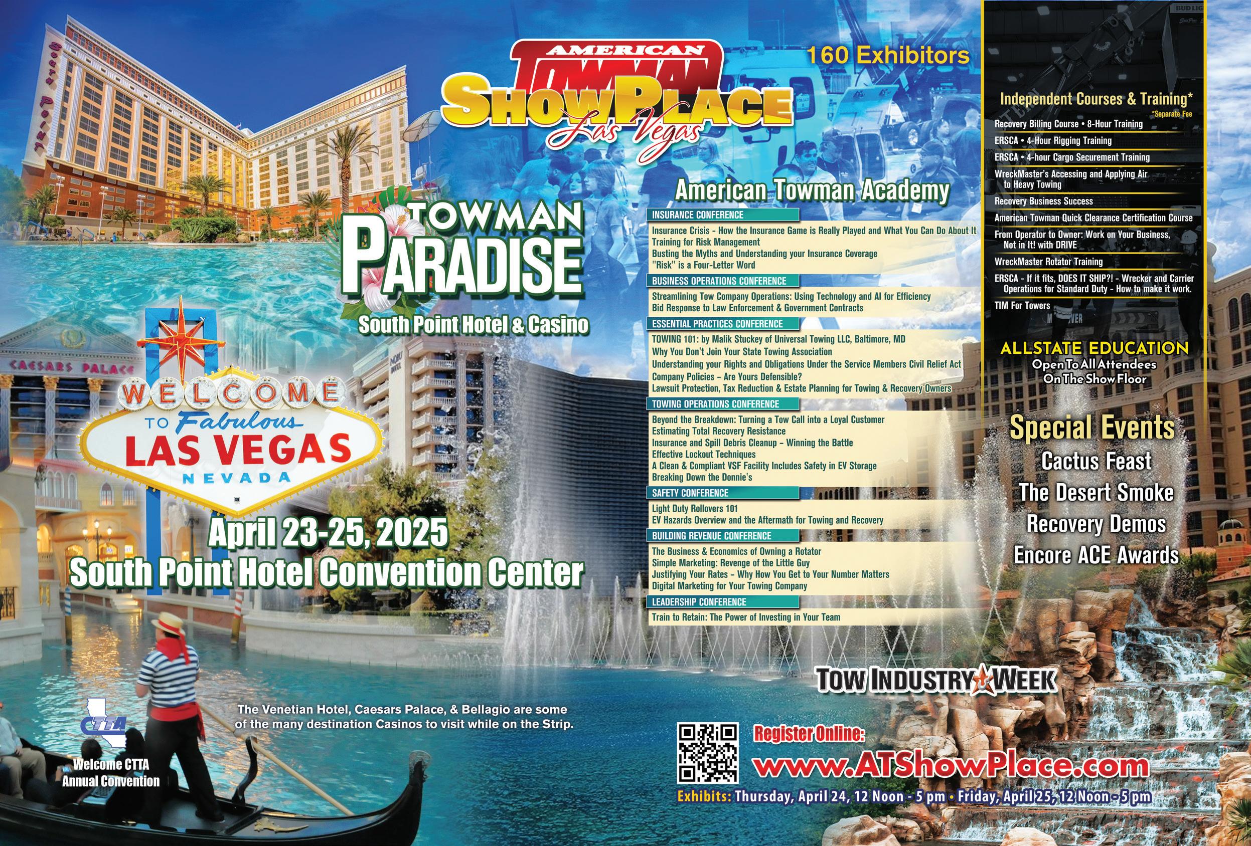 As for the American Towman ShowPlace - Las Vegas, that’s charismatic as well. It’s taking place at the South Point Hotel—a great resort that’s a convenient distance from the sensory overload of The Strip, and offers just about every amenity a towman might want. It’s well suited for AT’s ShowPlace event, as the exhibit areas are spacious and easy to navigate for checking out all the tow trucks and equipment on display. Also, the upcoming seminars provide an extensive array of useful topics for towmen. There are too many to list here (see https://atshowplace.com/#exhibits), but suffice it to say if you can’t find something of use to your tow company at ShowPlace - Las Vegas, you probably don’t need it.
