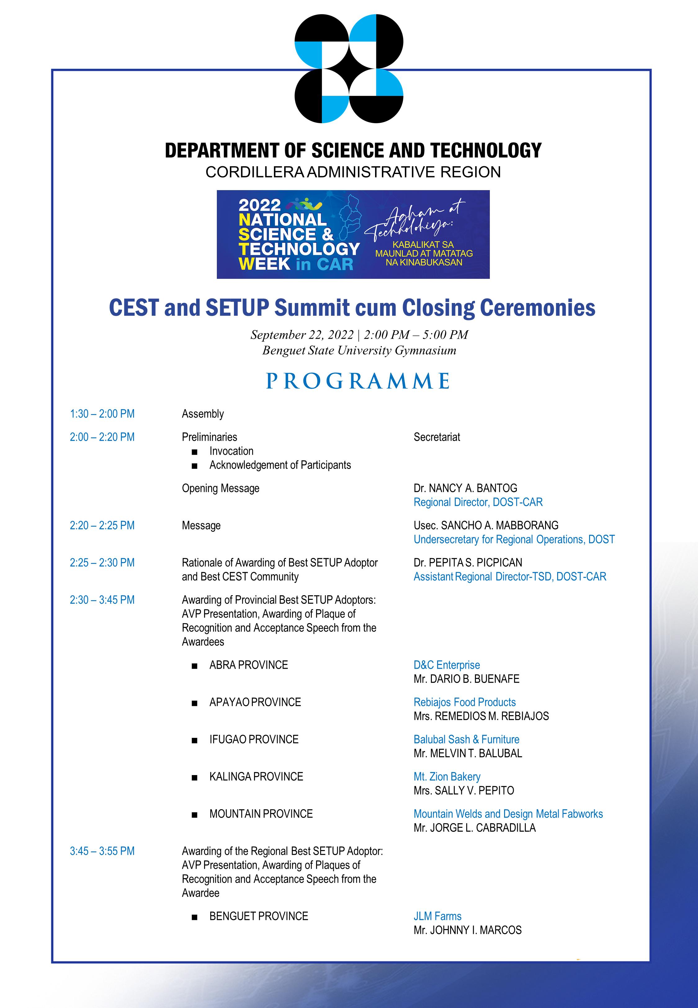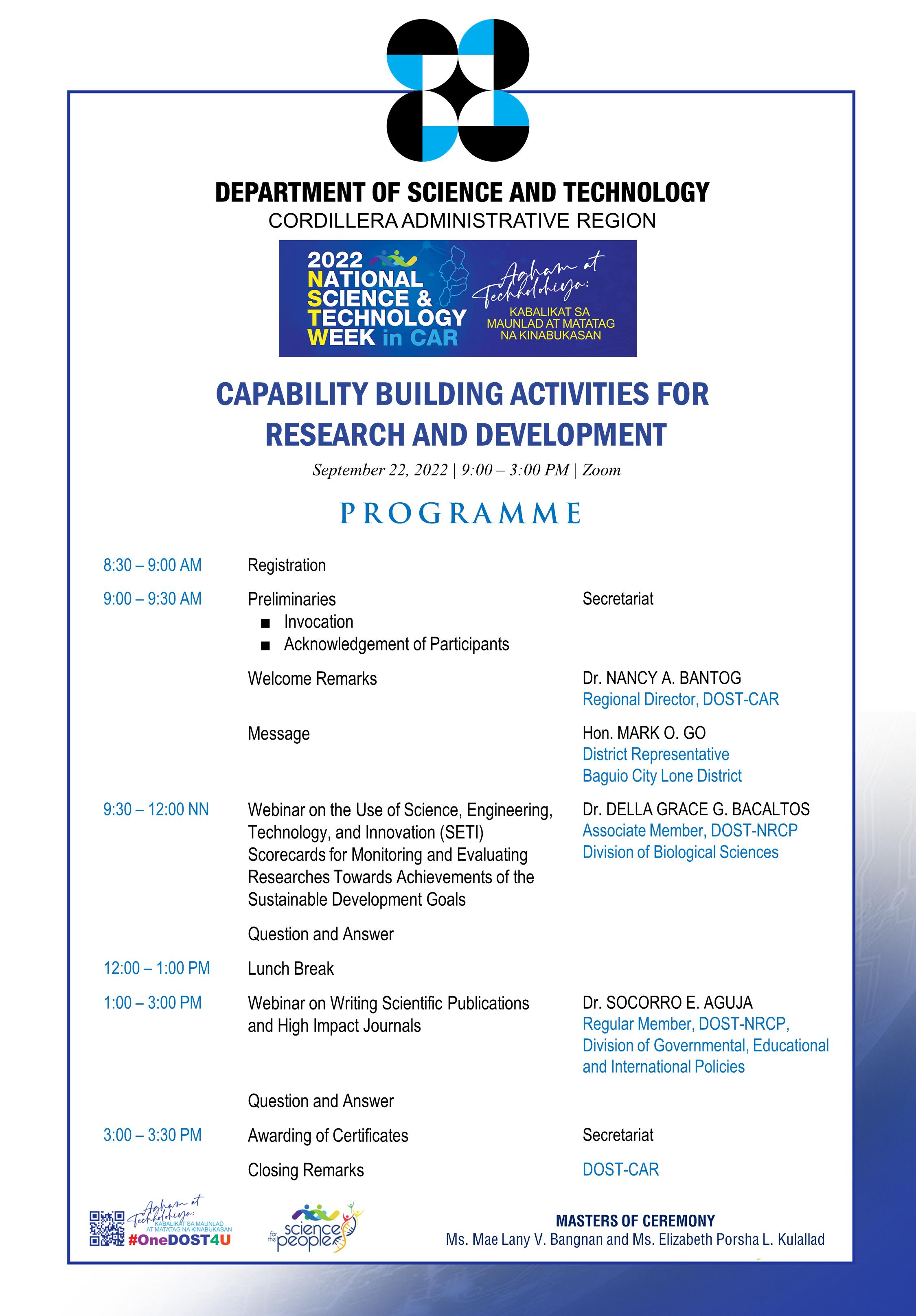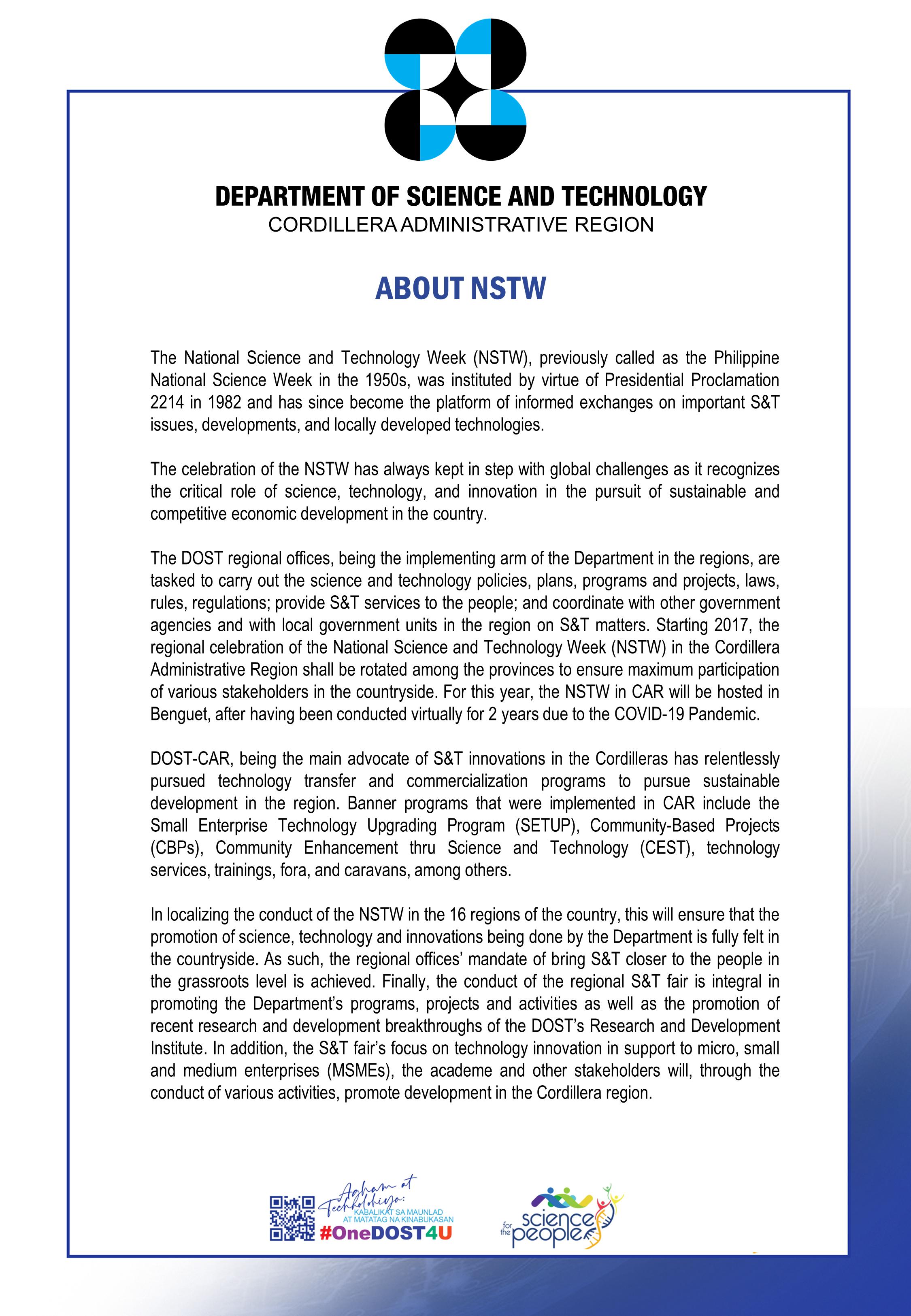 2022 NSTW in CAR Program of Activities