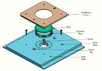 The assembly is made up of two major components: the baseplate and the workpiece holder. On the entire assembly, the base plate clamps
