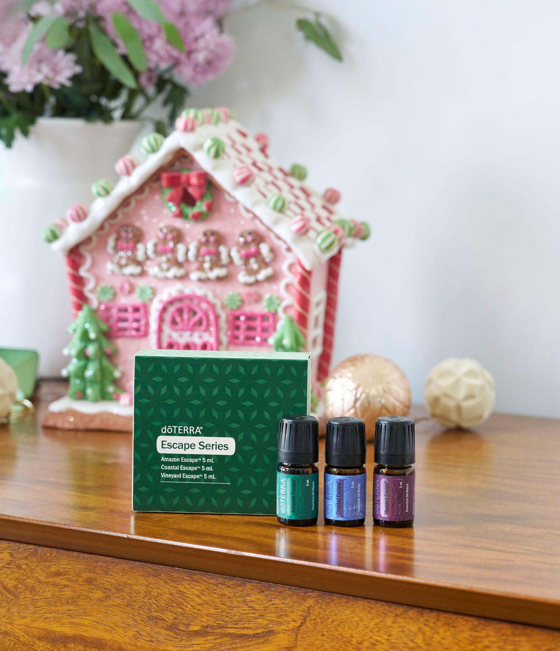 This exclusive 5 mL collection brings together the vibrant aromas of Amazon Escape, Coastal Escape, and Vineyard Escape. Amazon Escape captures the refreshing essence of a lush rainforest, while Coastal Escape evokes the calming atmosphere of blue skies and salty sea air. Vineyard Escape immerses you in the warm, welcoming aroma of a picturesque vineyard countryside. Each essential oil in the Escape Series enhances your home’s ambiance, transforming your space into a peaceful retreat. 60231098 |