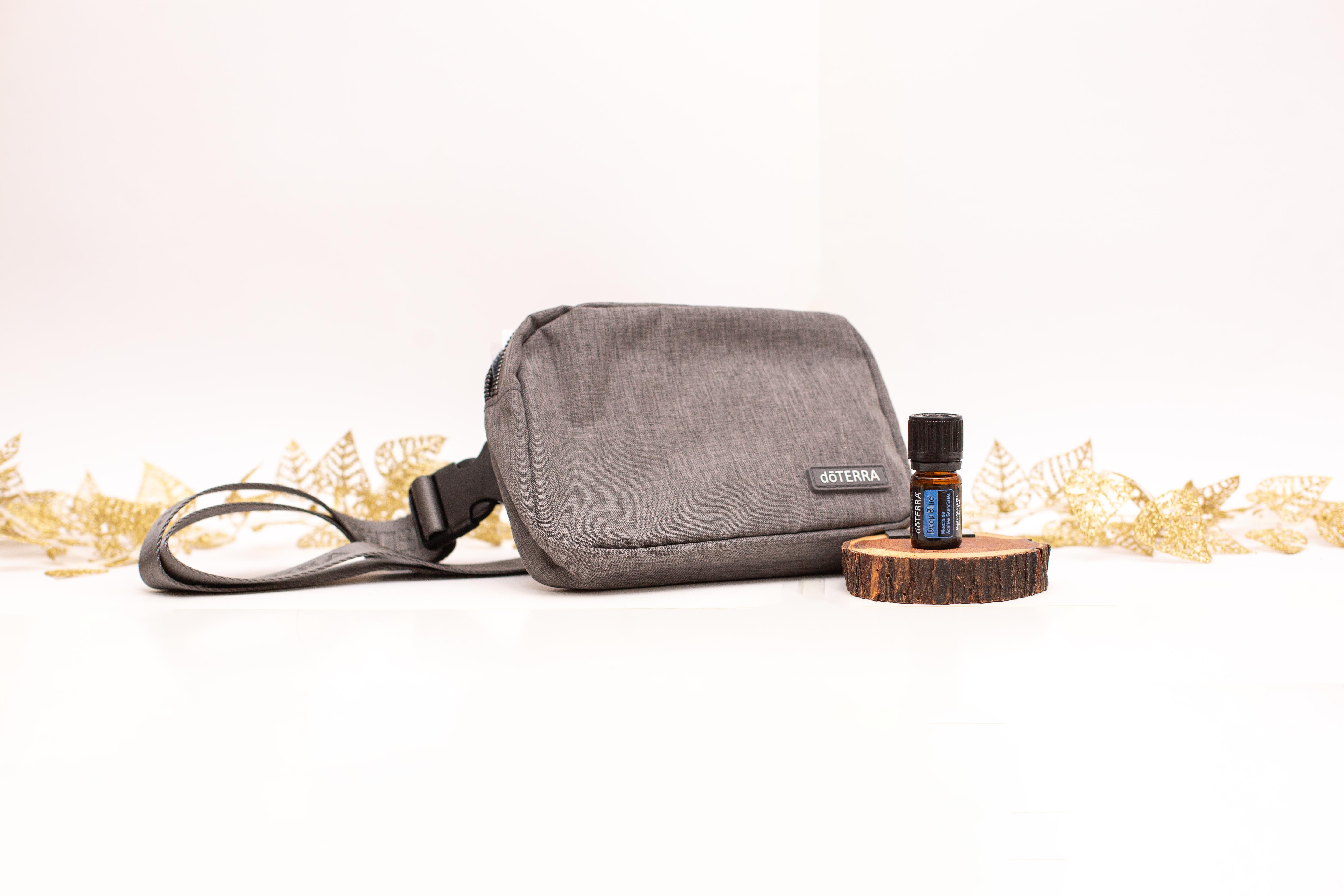 Descubre nuestra riñonera gris, práctica y perfecta para acompañarte en el día a día, junto a la mezcla Deep Blue® 5 mL, ideal para brindar sensación calmante, aliviar tensión y apoyar el confort muscular.