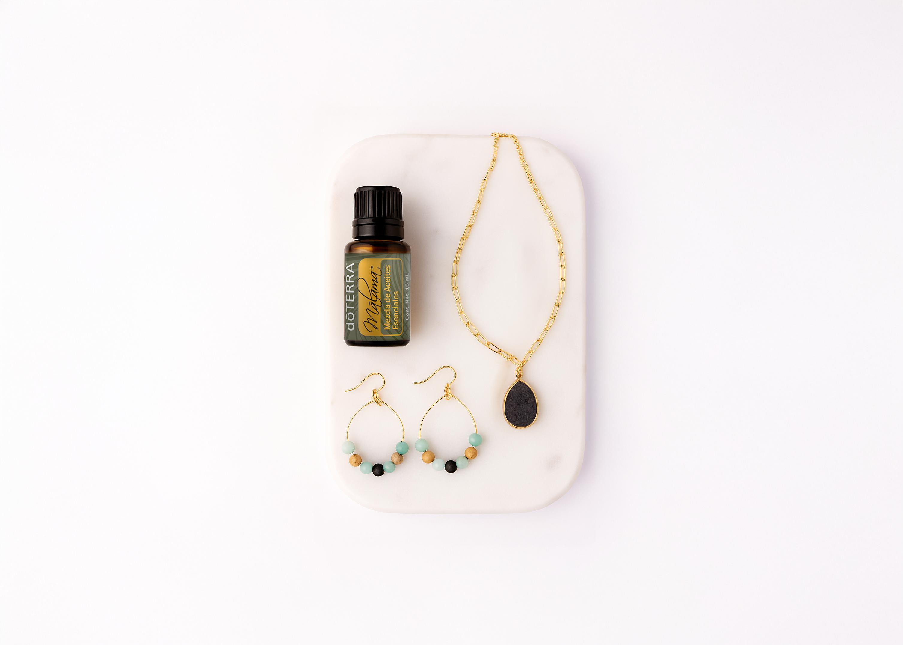 Nuestro set de joyería de Amazonita ilumina cualquier look con su energía calmante y su diseño natural. El collar incluye una piedra volcánica, perfecta para añadir unas gotas de tu aceite esencial favorito y llevar su aroma contigo todo el día.