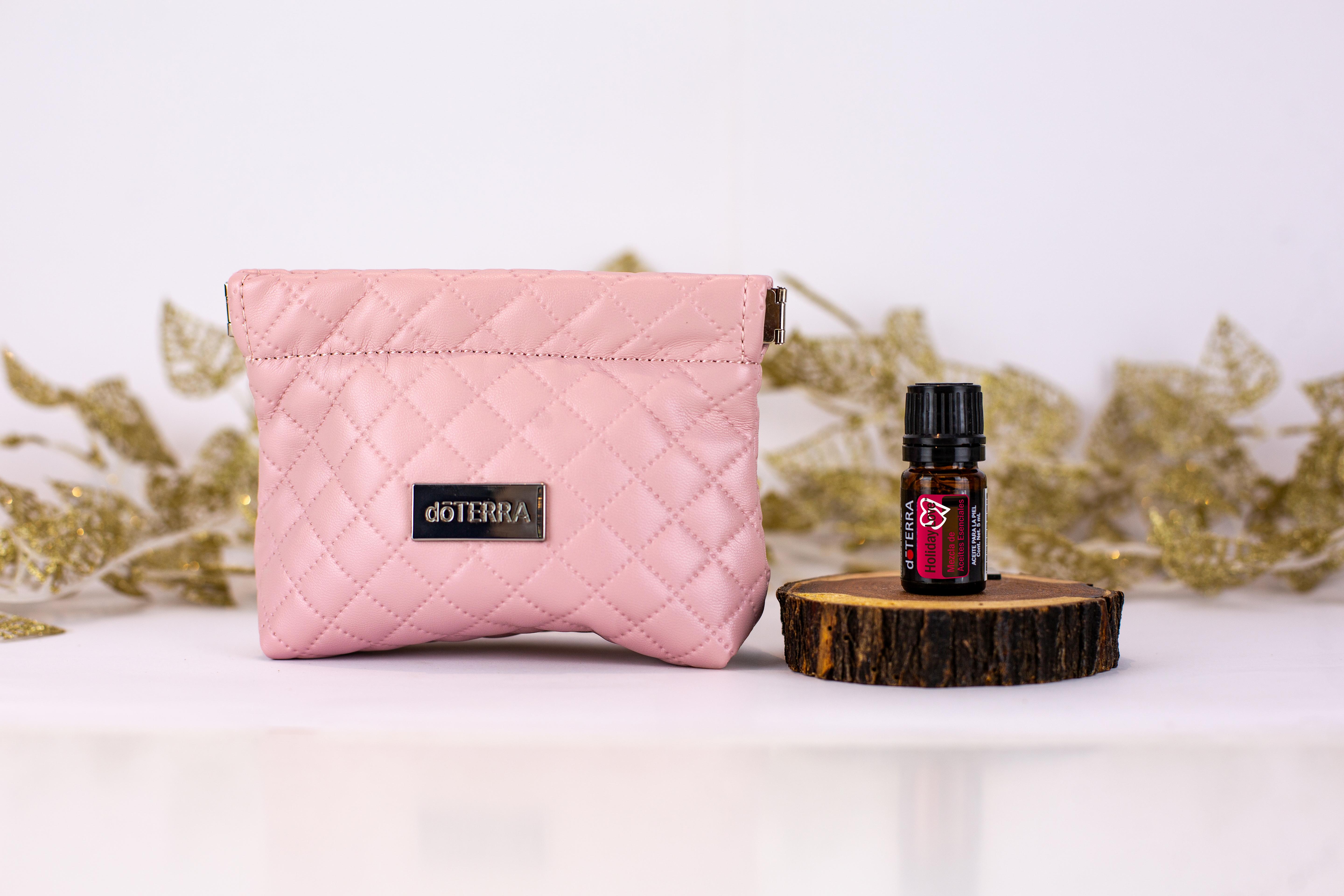 Nuestra bolsa acolchada rosa es el lugar perfecto para guardar tus aceites esenciales con estilo y protección, viene acompañada de Holiday Love, la mezcla que envuelve cada momento en un aroma cálido, festivo y lleno de amor.