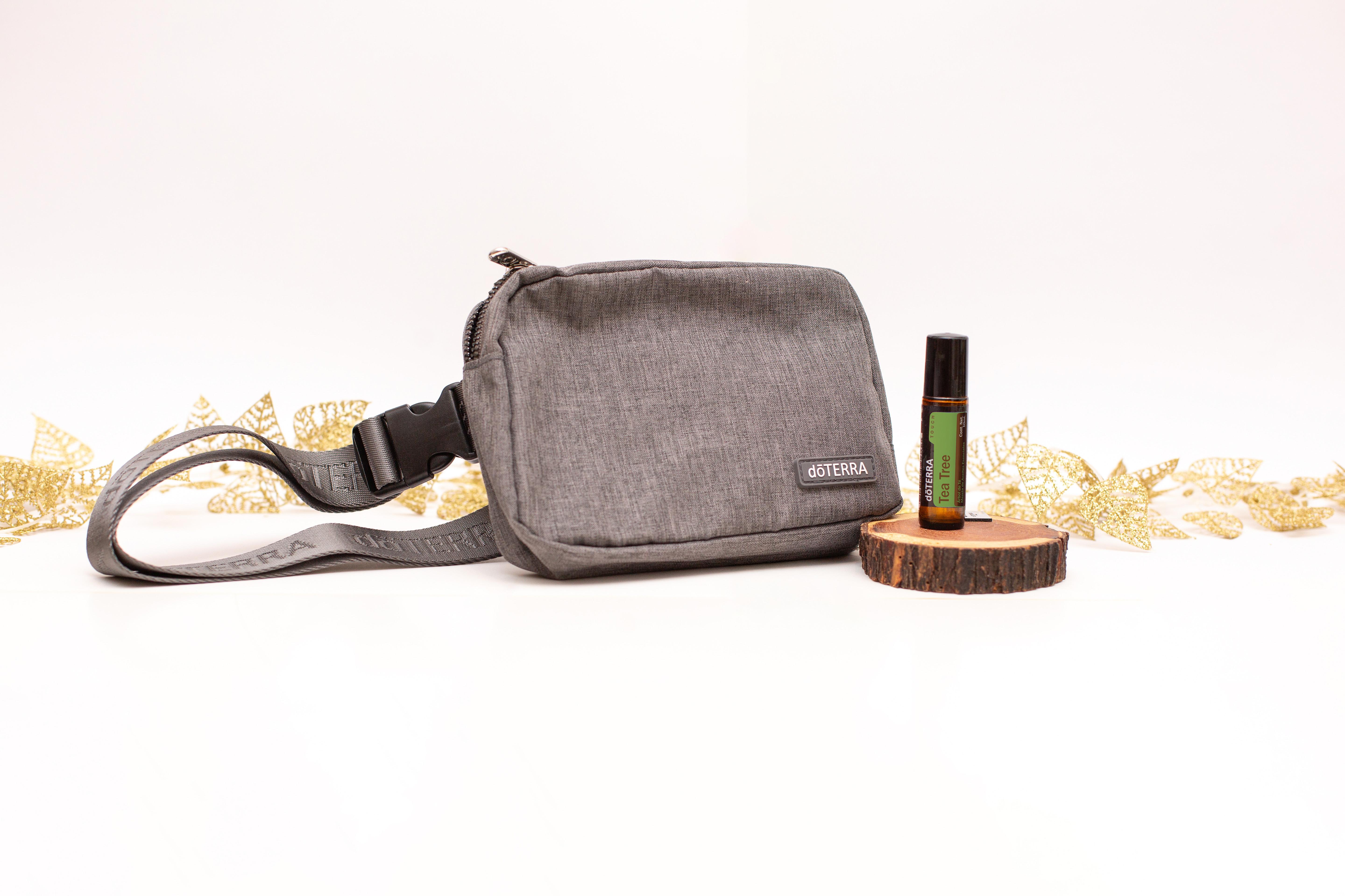 Nuestra riñonera gris es práctica, ligera y perfecta para acompañarte en tus días más activos, y viene con Tea Tree Touch, ideal para mantener la piel limpia, purificada y protegida estés donde estés.