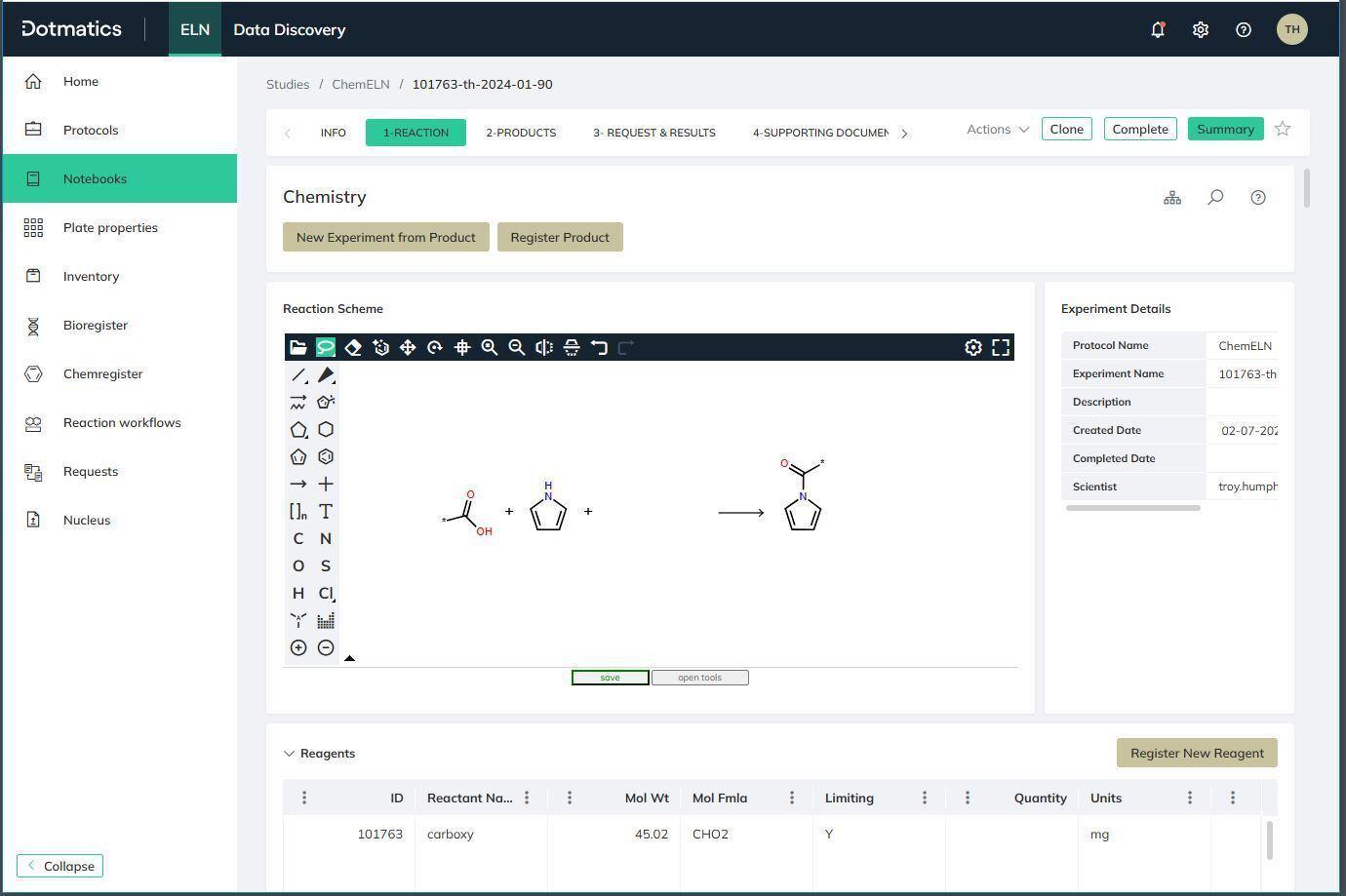 Need to sketch reactions, track limiting reagents, and explore synthetic routes? The Dotmatics ELN does it all without slowing you down.
