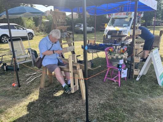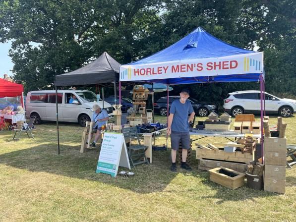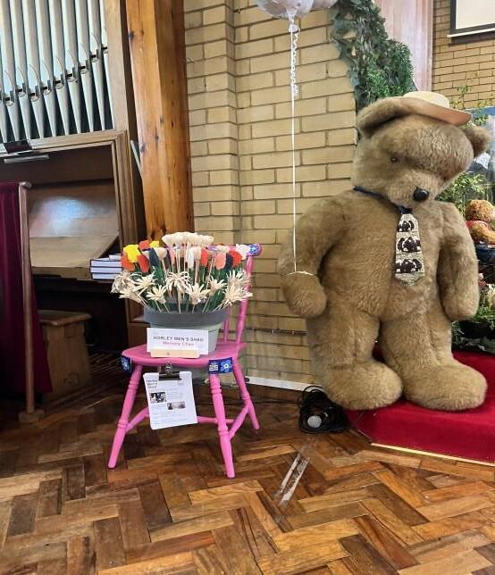 The Men’s Shed have been very busy, raising £162 at the Horley Carnival whilst demonstrating making Gypsy Flowers, entering a team at the Horley Lions Skittles Tournament, exhibiting a “Memory Chair” of home made wooden flowers at the Methodist Flower Festival whilst celebrating our second vbirthday with a BBQ with our landlords, the Horley Health Hub and a social trip to the Black Horse.
