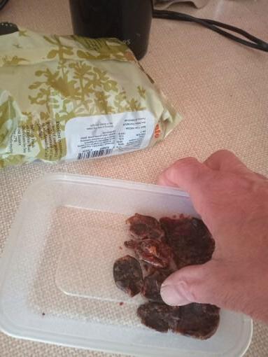 2. In the plastic box or similar container, place about 15 pitted organic dates.