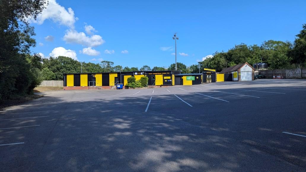 turn immediately left. There s a small sign on the lamp post pointing the way and a bigger sign, at the entrance to East Court, displaying details of our next home fixture. Anyway, follow the track, past the Rifle Club on your right and after about 300 yards East Grinstead Town FC will be in front of you.