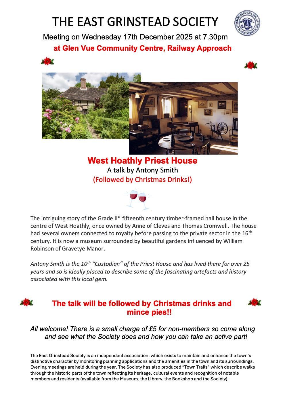 Our next talk is on Monday 12th January at the Jennings Hall, behind the Lingfield & Dormansland Community Centre in the High Street, Lingfield.